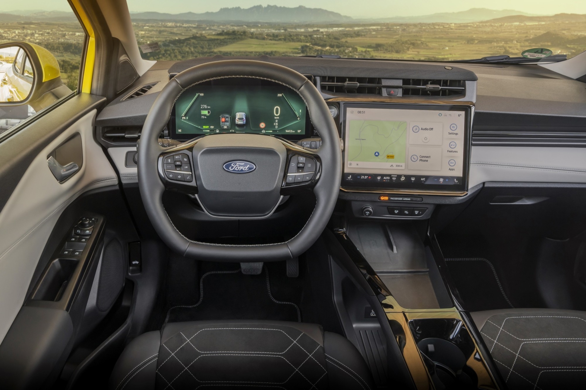 Niewielkie zmiany znaleźć można także we wnętrzu auta. Niezależnie od wersji mamy dwa monitory: 12-calowy, który zastępuje klasyczne zegary oraz 12,8” calowy kolorowy, dotykowy ekran centralny. Oprócz delikatnych zmian w menu i interfejsie przystosowanych do obsługi informacji charakterystycznych dla danego rodzaju napędu, w elektrycznej wersji Pumy znajdziemy także podniesioną konsolę środkową z poręcznym schowkiem i przesuwanym podłokietnikiem. Normalnie w tym miejscu jest klasyczny lewarek zmiany biegów. Ten w elektrycznym modelu nie dość, że ma nieco inny kształt, to na dodatek powędrował za kierownicę. Na tunelu środkowym jest przez to więcej miejsca.