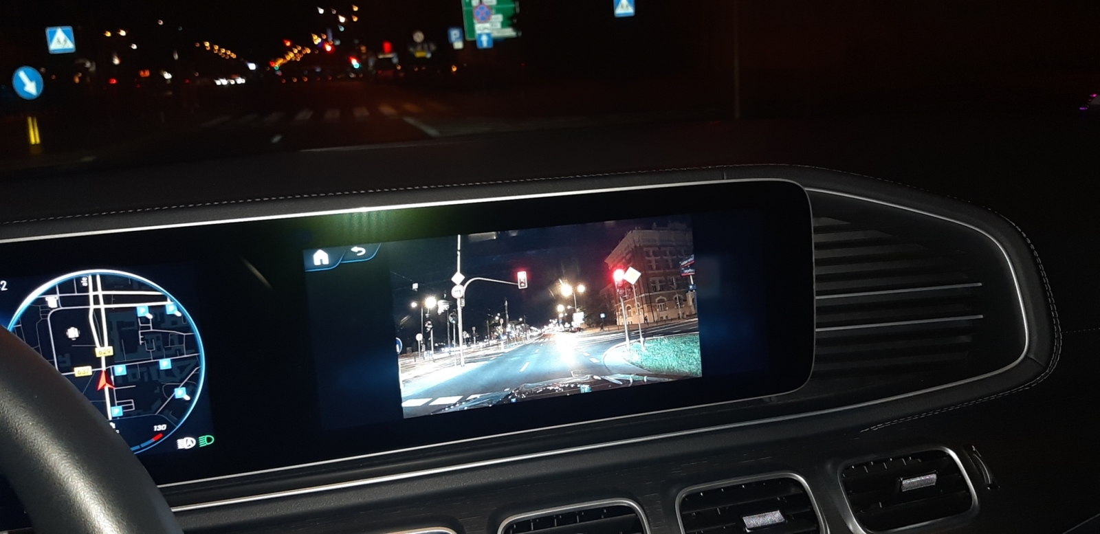 Super rozwiązaniem jest przednia kamera, która uruchamia się na czerwonym świetle i pokazuje w dużej perspektywie obraz przed samochodem. Nie musimy wychlać się i podnosić głowy, żeby dostrzec zmieniające się świtało, tylko wszystko widzimy na środkowym ekranie. Tyle o systemach, o który można napisać oddzielny artykuł.
