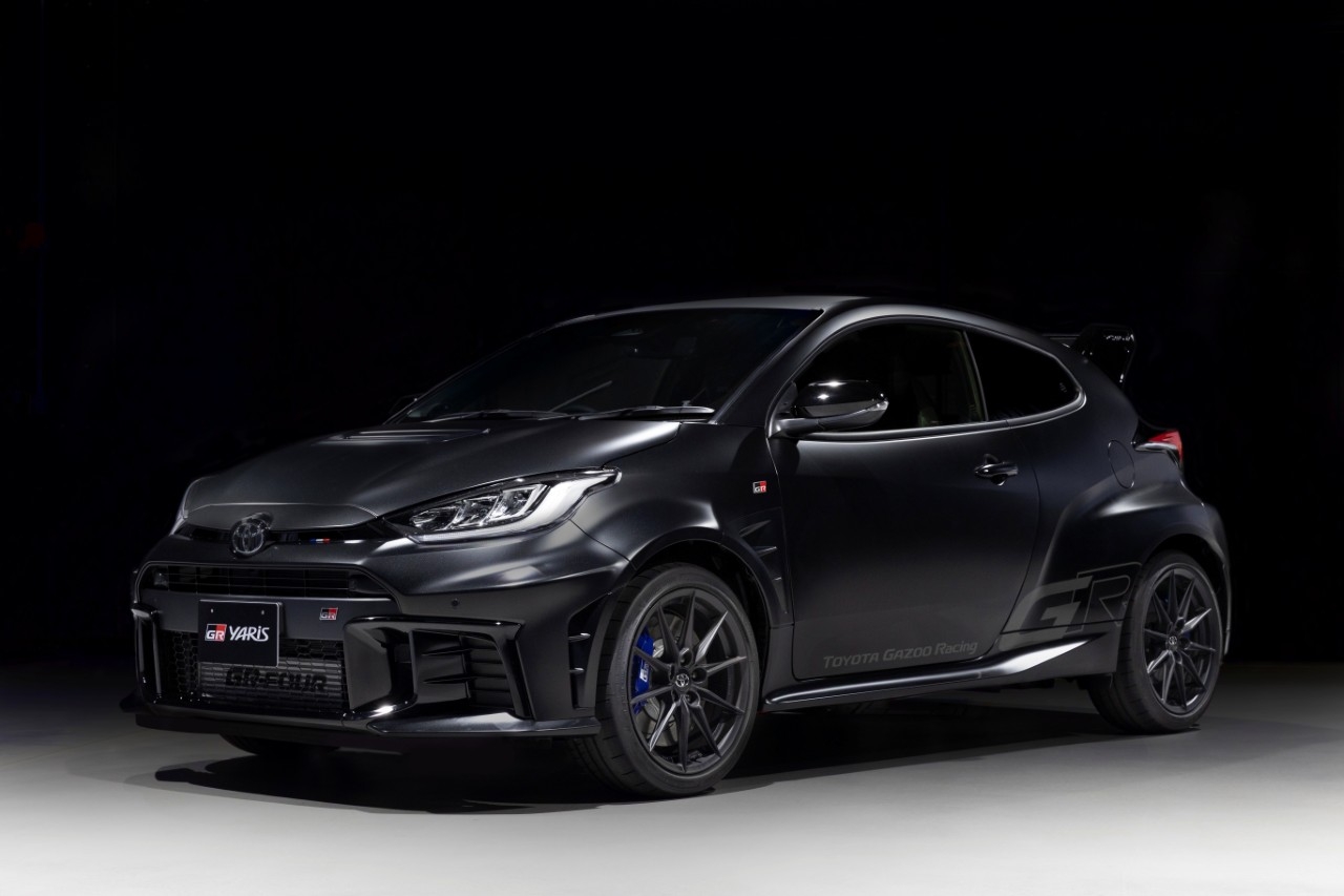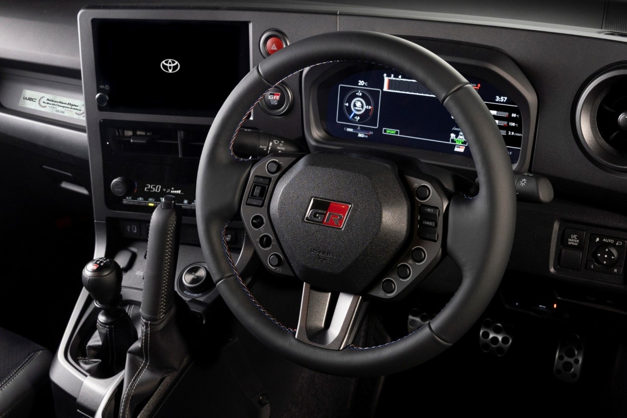 GR Yaris Sébastien Ogier 9x World Champion Edition otrzymał wyjątkowy lakier Black Gravite, który nawiązuje do malowania rajdowych GR YARISÓW Rally1 z sezonu 2025. Wygląd zewnętrzny uzupełniają matowo-czarne felgi, zaciski hamulcowe wykończono w charakterystycznym dla Ogiera niebieskim kolorze, a na atrapie chłodnicy pojawił się trójkolorowy akcent inspirowany flagą Francji.